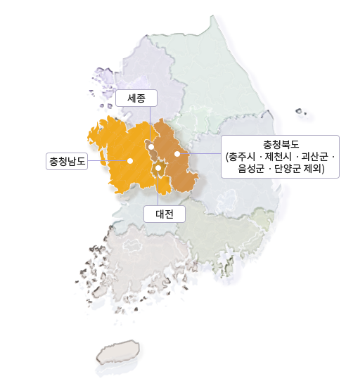 대전광역시, 세종특별자치시, 충청북도(원주지방환경청의 관할구역은 제외한다), 충청남도